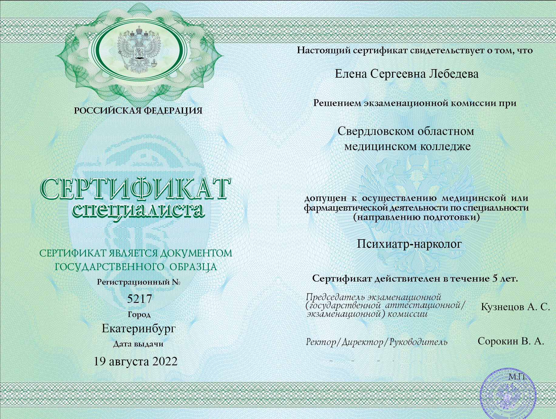 Елена Сергеевна Лебедева врач нарколог клиники доктора Стукаловой в Воркуте